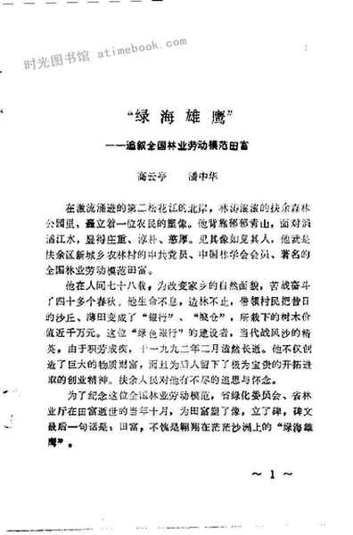 2-1、“绿海雄鹰”——追叙全国林业劳动模范田富——高云亭潘中华