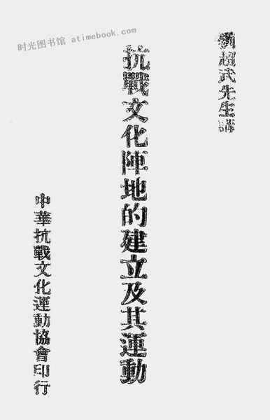 | 网盘路径:/时光图书馆珍藏系列/书籍文件/老图书/《抗战文化阵地的建立及其运动》电子版合集.db | ||
