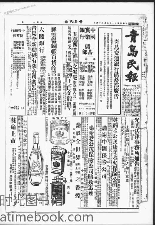 | 网盘路径:/时光图书馆珍藏系列/书籍文件/老报纸/山东/《青岛民报》(青岛)1932-1937/《青岛民报》1932年影印版合集.db | ||