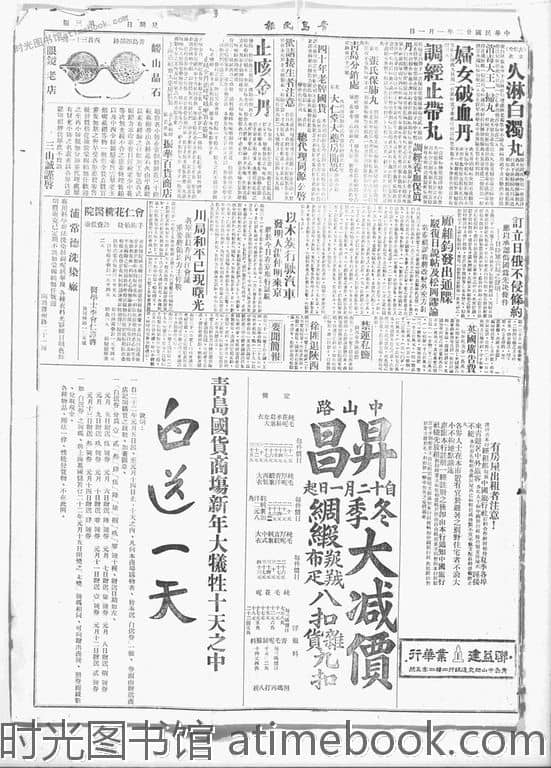 | 网盘路径:/时光图书馆珍藏系列/书籍文件/老报纸/山东/《青岛民报》(青岛)1932-1937/《青岛民报》1933年影印版合集.db | ||