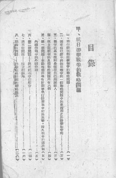 | 网盘路径:/时光图书馆珍藏系列/书籍文件/老图书/《抗日游击战争战略问题论持久战_合订本》电子版合集.db | ||