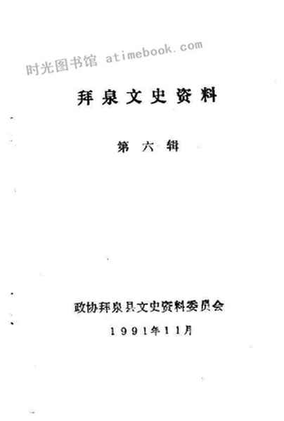 | 网盘路径:/时光图书馆珍藏系列/书籍文件/老图书/《拜泉文史资料_第6辑》电子版合集.db | ||