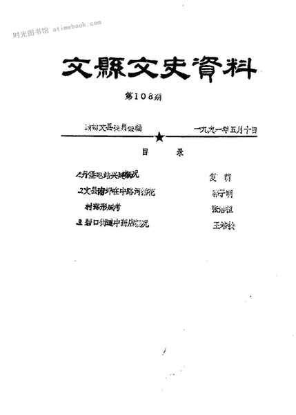 | 网盘路径:/时光图书馆珍藏系列/书籍文件/老图书/《文县文史资料_第108辑》电子版合集.db | ||