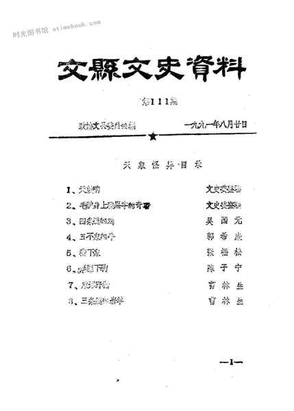 | 网盘路径:/时光图书馆珍藏系列/书籍文件/老图书/《文县文史资料_第111期》电子版合集.db | ||
