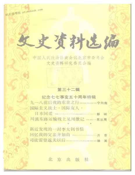 | 网盘路径:/时光图书馆珍藏系列/书籍文件/老图书/《文史资料选编_第32辑_纪念七七事变五十周年特辑》电子版合集.db | ||