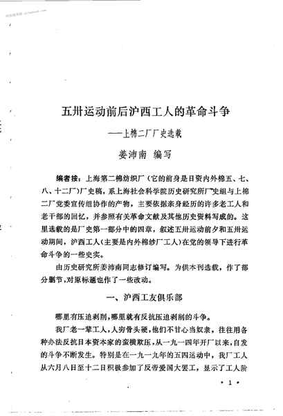 2-五卅运动前后沪西工人的*斗争——上棉二厂厂史选载姜沛南编写-1