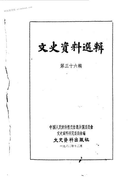 | 网盘路径:/时光图书馆珍藏系列/书籍文件/老图书/《文史资料选辑_第36辑》电子版合集.db | ||