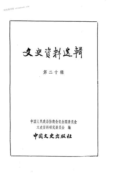 | 网盘路径:/时光图书馆珍藏系列/书籍文件/老图书/《文史资料选辑_第6卷第20辑》电子版合集.db | ||