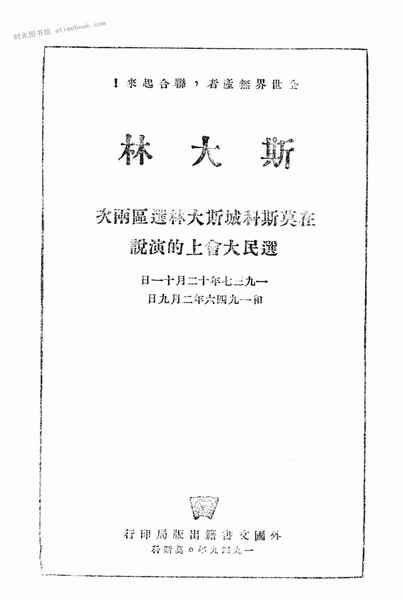 | 网盘路径:/时光图书馆珍藏系列/书籍文件/老图书/《斯大林在莫斯科城斯大林选区两次选民大会上的演说》电子版合集.db | ||