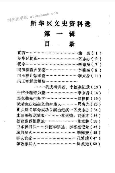 | 网盘路径:/时光图书馆珍藏系列/书籍文件/老图书/《新华区文史资料_第1辑》电子版合集.db | ||