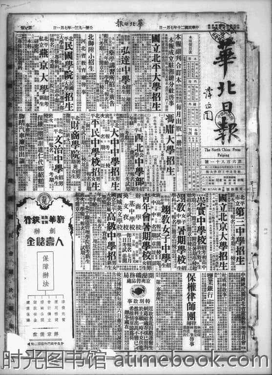 网盘路径:/时光图书馆珍藏系列/书籍文件/老报纸/北京/《华北日报》(北京)1929-1949/《华北日报》北京1931年影印版合集.db
