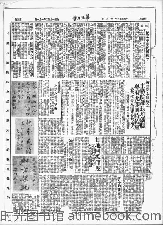 | 网盘路径:/时光图书馆珍藏系列/书籍文件/老报纸/北京/《华北日报》(北京)1929-1949/《华北日报》北京1932年影印版合集.db | ||