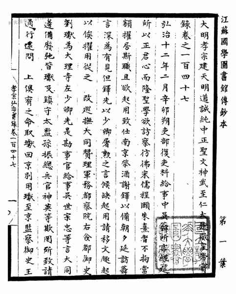 2-大明孝宗建天明道诚纯中正圣文神武至仁大德敬*实录卷之一百四十七-1