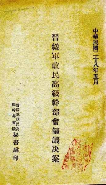名称:《晋绥军政民高级干部会议议决案》电子版合集