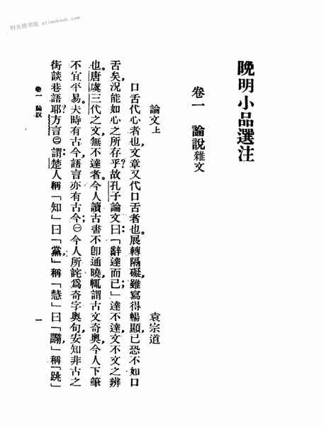 | 网盘路径:/时光图书馆珍藏系列/书籍文件/老图书/《晚明小品文选_第1册》电子版合集.db | ||