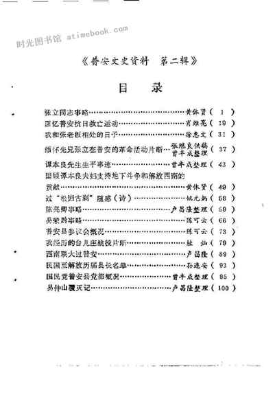 | 网盘路径:/时光图书馆珍藏系列/书籍文件/老图书/《普安文史资料_第2辑》电子版合集.db | ||