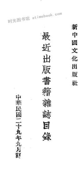 网盘路径:/时光图书馆珍藏系列/书籍文件/老图书/《最近出版书籍杂志目录》电子版合集.db