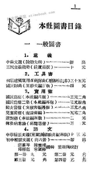 网盘路径:/时光图书馆珍藏系列/书籍文件/老图书/《本社图书目录》电子版合集.db
