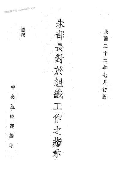 | 网盘路径:/时光图书馆珍藏系列/书籍文件/老图书/《朱部长对于组织工作之指示》电子版合集.db | ||