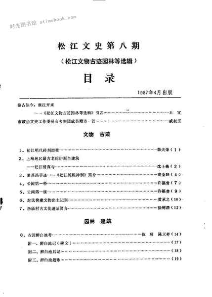 | 网盘路径:/时光图书馆珍藏系列/书籍文件/老图书/《松江文史_第8期_松江文物·古迹·园林·建筑等选编》电子版合集.db | ||