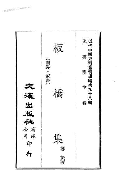 | 网盘路径:/时光图书馆珍藏系列/书籍文件/老图书/《板桥集:词钞·家书》电子版合集.db | ||
