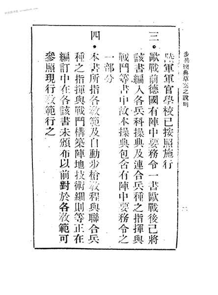 | 网盘路径:/时光图书馆珍藏系列/书籍文件/老图书/《步兵操典新草案(第二五册)》电子版合集.db | ||