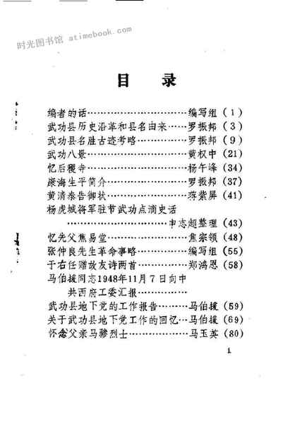 | 网盘路径:/时光图书馆珍藏系列/书籍文件/老图书/《武功县文史资料_第1辑》电子版合集.db | ||