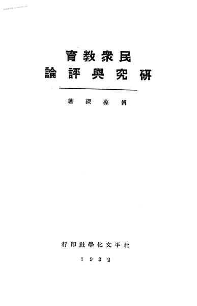 | 网盘路径:/时光图书馆珍藏系列/书籍文件/老图书/《民众教育研究与评论》电子版合集.db | ||