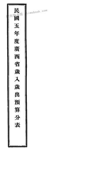 | 网盘路径:/时光图书馆珍藏系列/书籍文件/老图书/《民国五年度广西省岁入岁出预算分表》电子版合集.db | ||