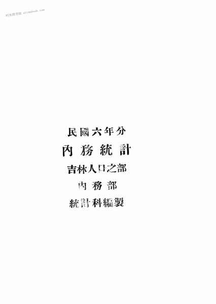 | 网盘路径:/时光图书馆珍藏系列/书籍文件/老图书/《民国六年分内务统计(吉林人口之部)》电子版合集.db | ||