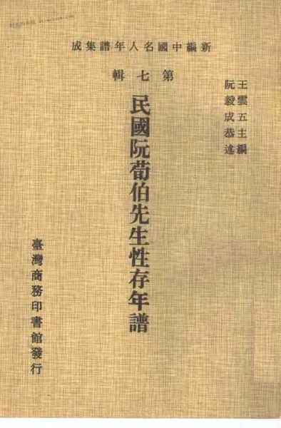网盘路径:/时光图书馆珍藏系列/书籍文件/老图书/《民国阮荀伯先生性存年谱》电子版合集.db