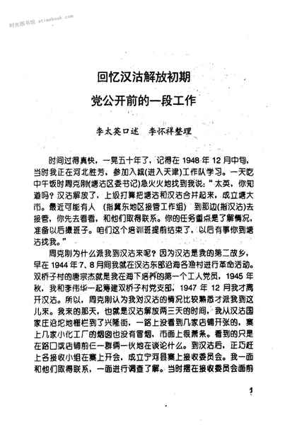 3-回忆汉沽解放初期*公开前的一段工作李太英口述李怀祥整理