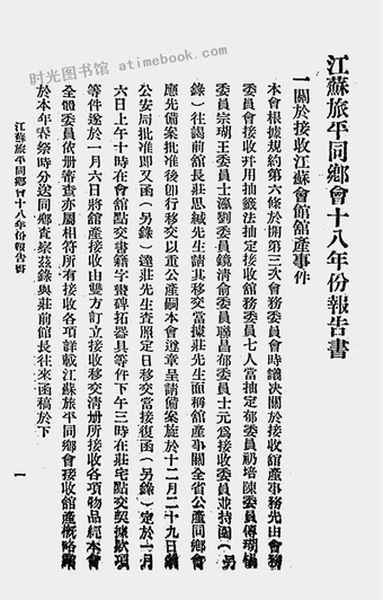 | 网盘路径:/时光图书馆珍藏系列/书籍文件/老图书/《江苏旅平同乡会十八年份报告书》电子版合集.db | ||