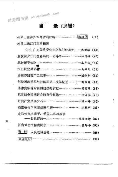 | 网盘路径:/时光图书馆珍藏系列/书籍文件/老图书/《江门文史_第15辑》电子版合集.db | ||