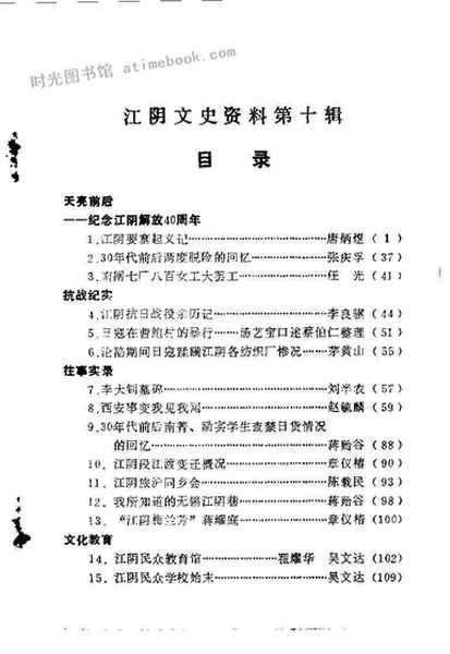 | 网盘路径:/时光图书馆珍藏系列/书籍文件/老图书/《江阴文史资料_第10辑》电子版合集.db | ||