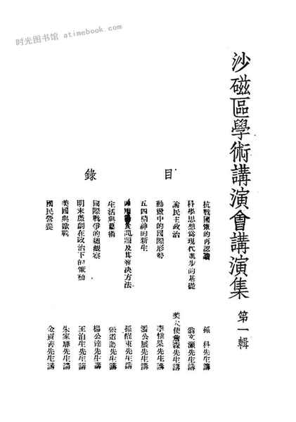 | 网盘路径:/时光图书馆珍藏系列/书籍文件/老图书/《沙磁区学术演讲会演讲集》电子版合集.db | ||