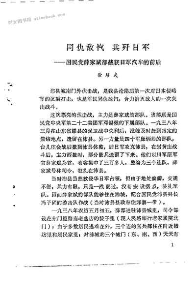 2-同仇敌忾共歼日军——国民*薛家斌部截获日军汽车的前后徐培武