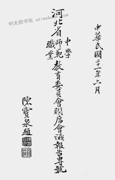 | 网盘路径:/时光图书馆珍藏系列/书籍文件/老图书/《河北省中学、师范、职业教育委员会联席会议报告专号》电子版合集.db | ||