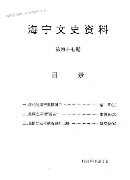 | 网盘路径:/时光图书馆珍藏系列/书籍文件/老图书/《海宁文史资料_第47辑》电子版合集.db | ||