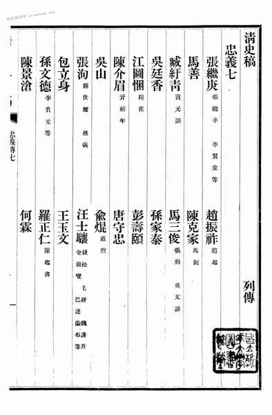 | 网盘路径:/时光图书馆珍藏系列/书籍文件/老图书/《清史稿·忠义传七之十》电子版合集.db | ||