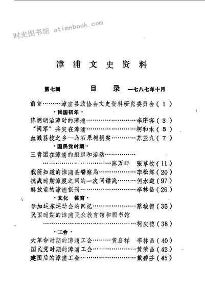 | 网盘路径:/时光图书馆珍藏系列/书籍文件/老图书/《漳浦文史资料_第7辑》电子版合集.db | ||