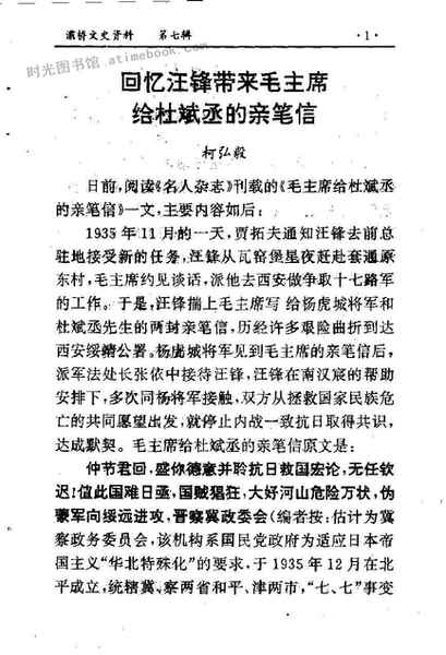 2-回忆汪锋带来毛主席给杜斌丞的亲笔信柯弘毅