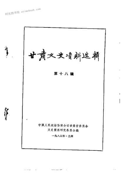 网盘路径:/时光图书馆珍藏系列/书籍文件/老图书/《甘肃文史资料选辑_第18辑》电子版合集.db