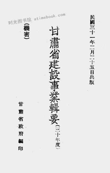 | 网盘路径:/时光图书馆珍藏系列/书籍文件/老图书/《甘肃省建设事业辑要(三十年度)》电子版合集.db | ||