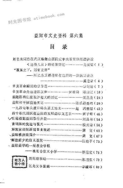 | 网盘路径:/时光图书馆珍藏系列/书籍文件/老图书/《益阳市文史资料_第6辑》电子版合集.db | ||