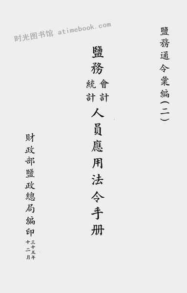 | 网盘路径:/时光图书馆珍藏系列/书籍文件/老图书/《盐务会计、统计人员应用法令手册》电子版合集.db | ||