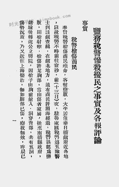 | 网盘路径:/时光图书馆珍藏系列/书籍文件/老图书/《盐务税警惨杀扰民之事实及各报评论》电子版合集.db | ||