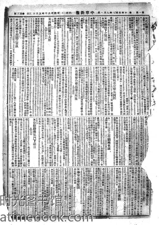 网盘路径:/时光图书馆珍藏系列/书籍文件/老报纸/上海/《中华新报》(上海)1915-1926/《中华新报》(上海)1918年影印版合集下半年.db