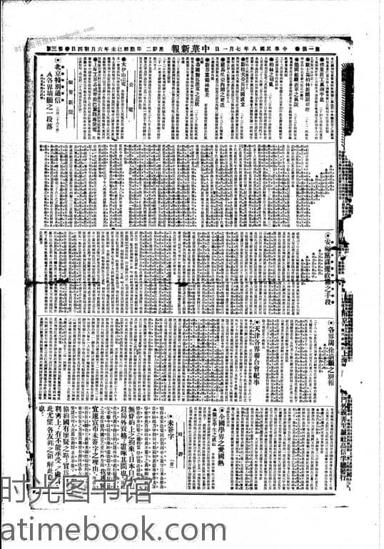 网盘路径:/时光图书馆珍藏系列/书籍文件/老报纸/上海/《中华新报》(上海)1915-1926/《中华新报》(上海)1919年影印版合集下半年.db