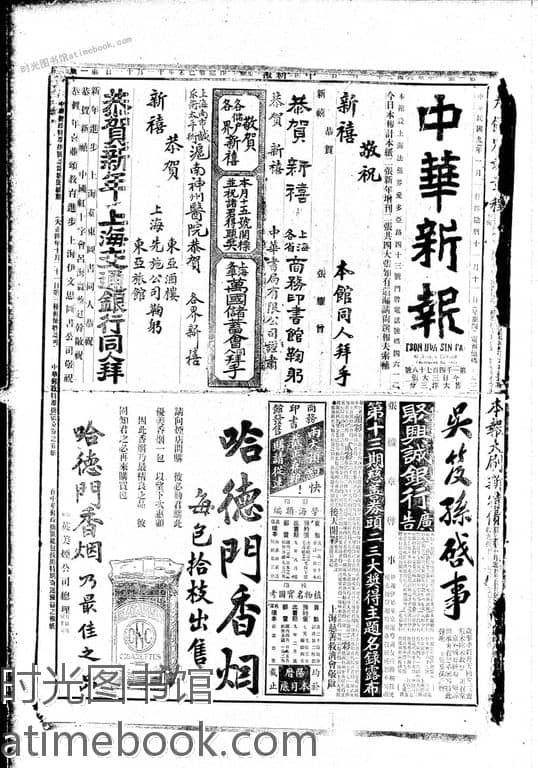 网盘路径:/时光图书馆珍藏系列/书籍文件/老报纸/上海/《中华新报》(上海)1915-1926/《中华新报》(上海)1920年影印版合集下半年.db
